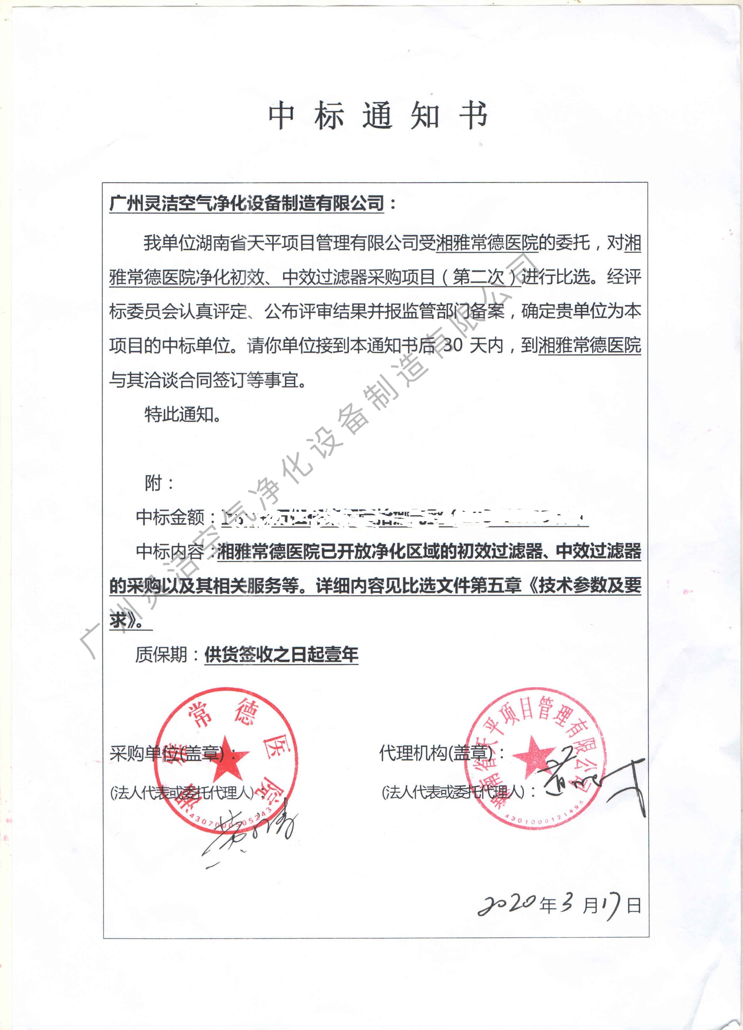 我司為湘雅常德醫(yī)院凈化區(qū)域初效過(guò)濾器、中效過(guò)濾器高效過(guò)濾器更換安裝完畢