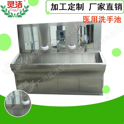 靈潔醫(yī)用不銹鋼洗手池采用優(yōu)質(zhì)304不銹鋼板制造,耐腐蝕,抗晶間腐蝕。不銹鋼醫(yī)用洗手池有單人、雙人、三人、四人及多人洗手池,出水方式有自動感應(yīng)式、膝碰式、腳踏式。可自行選購電熱水器、不銹鋼出刷器。