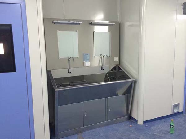 靈潔公司設(shè)計(jì)的醫(yī)用不銹鋼洗手池 ,依據(jù)人體工程學(xué)完美設(shè)計(jì),供醫(yī)護(hù)人員/使用員工作前后洗手,本品全進(jìn)口304#不銹鋼制作,內(nèi)槽前后左右全圓角斜面設(shè)計(jì),光亮無死角,不綻水,不藏垃圾細(xì)菌,通過感應(yīng)部件,人手接近時(shí)自動(dòng)出水,離開時(shí)自動(dòng)停水,并裝有熱水裝置,可調(diào)節(jié)出水溫度??蛇x擇帶玻璃鏡/或者落地/掛墻式